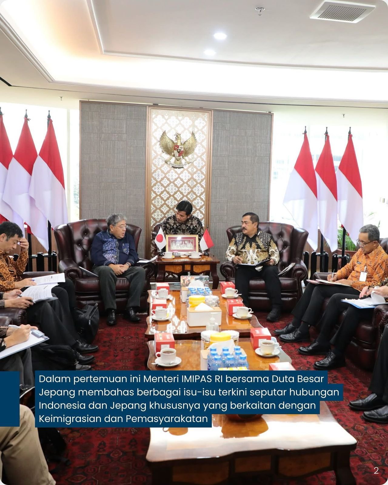 “Dalam pertemuan ini, kami membahas berbagai isu terkini seputar hubungan bilateral antara Republik Indonesia dan Jepang terkhusus terkait dengan keimigrasian dan pemasyarakatan,” Ujar Mantan Wakapolri ini.