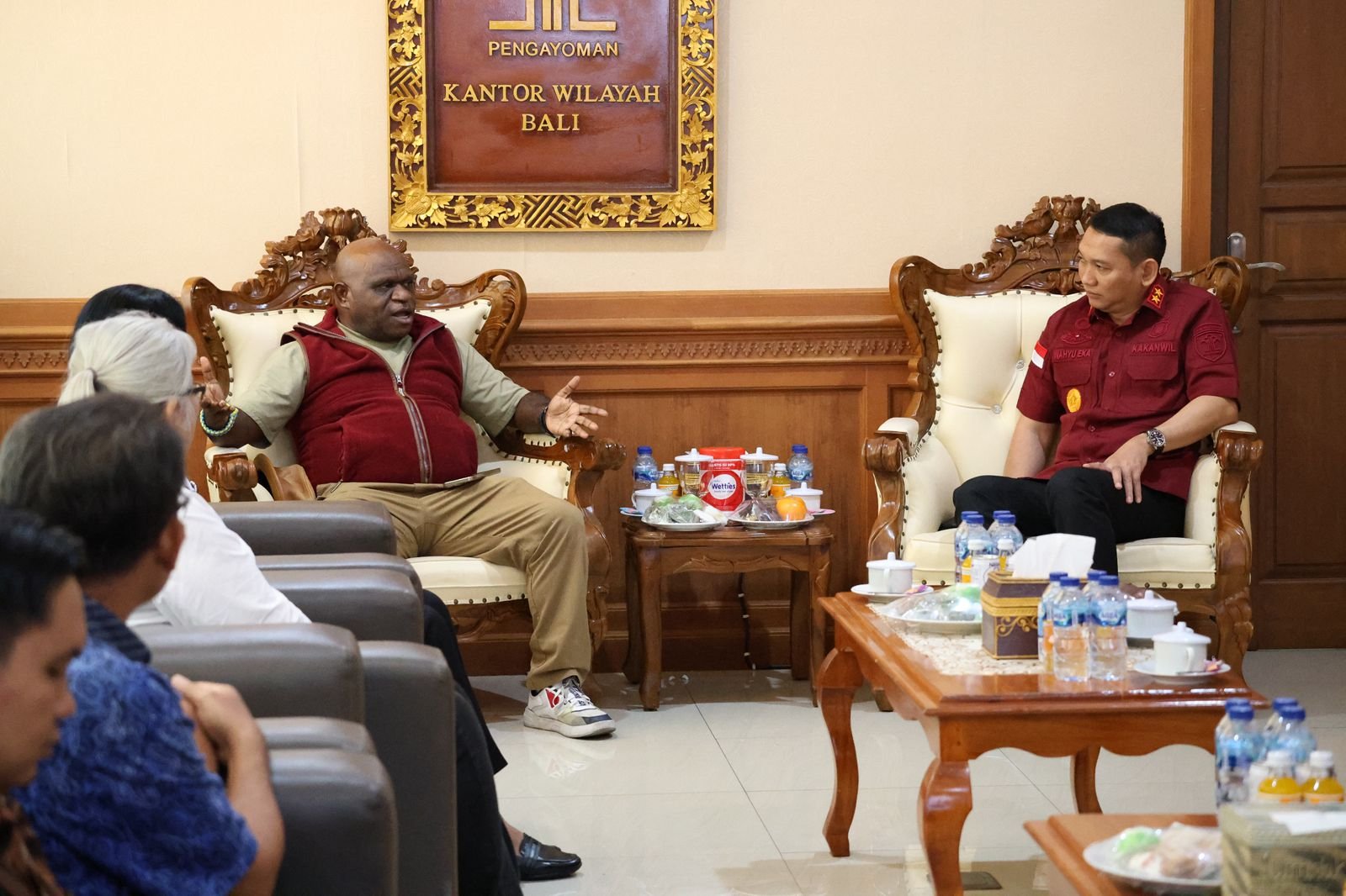 Setibanya di Bandara Internasional I Gusti Ngurah Rai, Menteri HAM disambut langsung oleh Kepala Kantor Wilayah Kemenkum Bali, Wahyu Eka Putra, beserta jajaran. Setelah itu, Menteri HAM Natalius Pigai langsung menuju Kanwil Kemenkum Bali untuk melaksanakan rangkaian kegiatan.