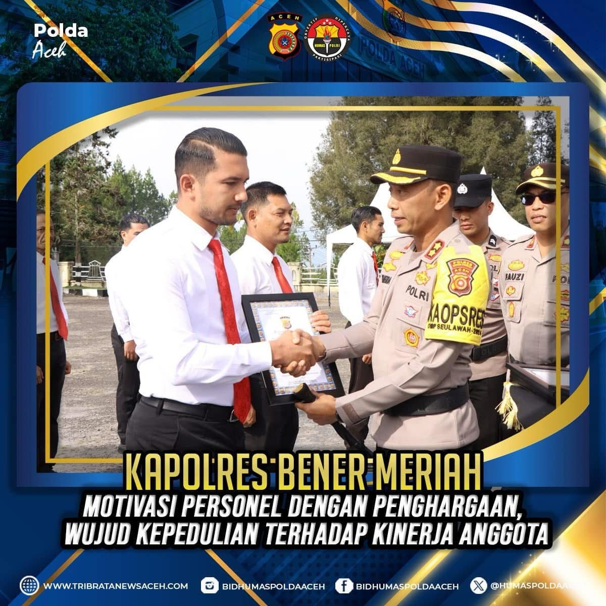 Dengan adanya penghargaan ini, diharapkan seluruh personel Polres Bener Meriah semakin bersemangat dalam mengemban tugasnya serta terus memberikan pelayanan terbaik bagi masyarakat.