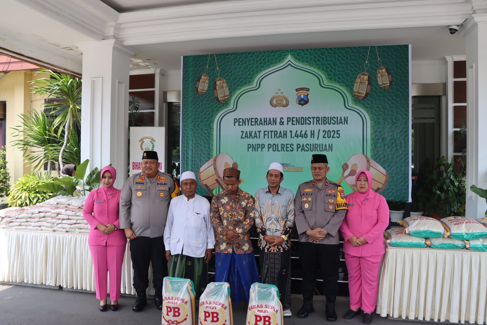 Sebanyak 15 tukang becak dan 11 anak yatim menerima bantuan berupa beras, masing-masing mendapatkan 50 kg. Penyerahan zakat fitrah ini berlangsung di yayasan yatim piatu dengan dihadiri Wakapolres Pasuruan, Ketua Bhayangkari, tokoh agama, pemimpin yayasan, serta sejumlah tukang becak.