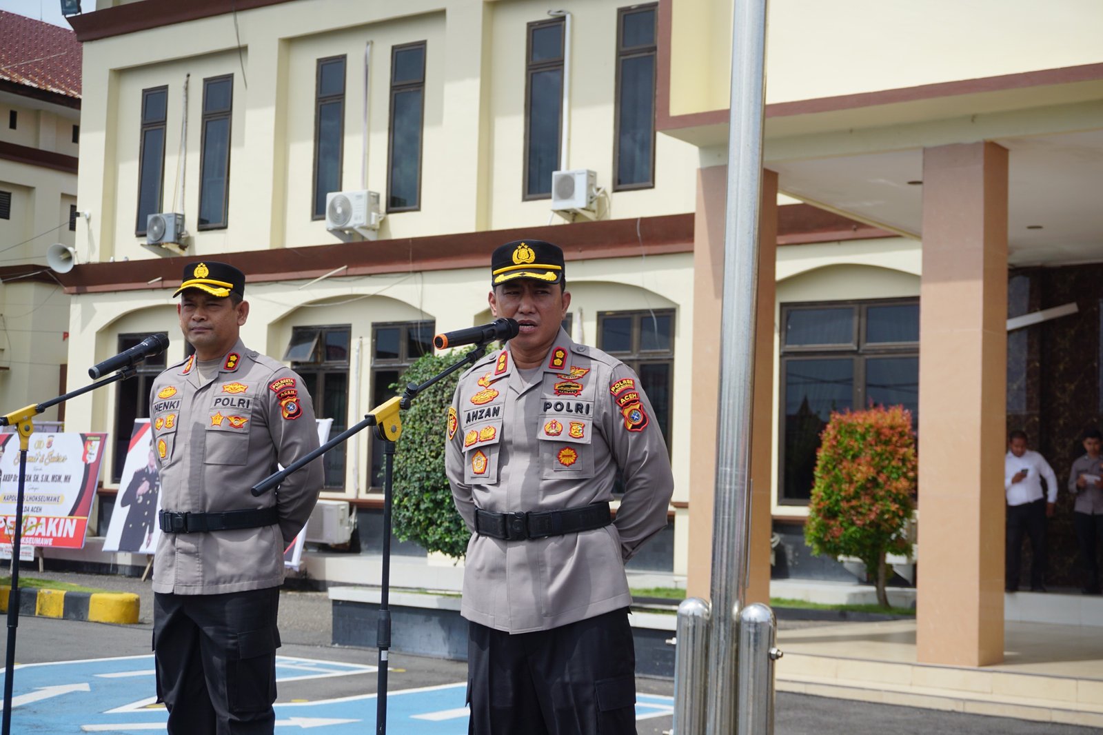 Lhokseumawe – Kapolres Lhokseumawe AKBP Dr Ahzan, S.I.K., M.S.M., M.H. menyampaikan apresiasi atas dedikasi AKBP Henki Ismanto, S.I.K serta mengajak seluruh personel untuk melanjutkan semangat pelayanan dan pengabdian kepada masyarakat Kota Lhokseumawe dan Kabupaten Aceh Utara.