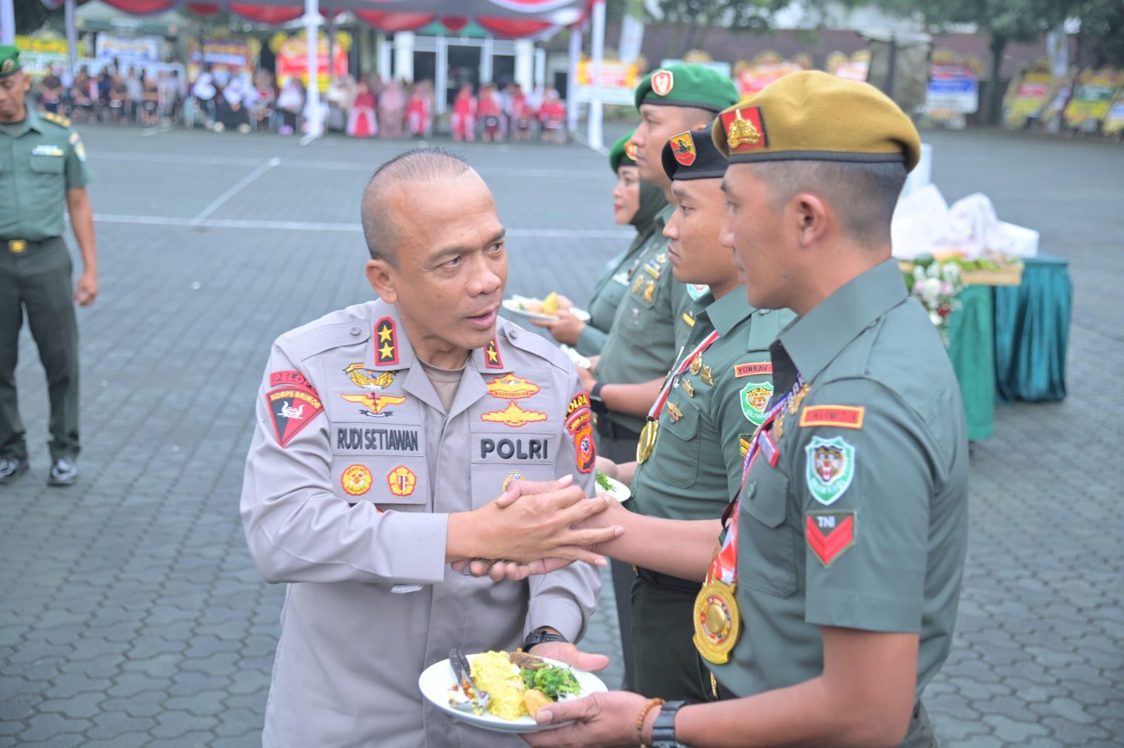 Sebagai bentuk sinergitas dan soliditas TNI-Polri yang selama ini terjalin erat, Kapolda Jawa Barat Irjen Pol. Rudi Setiawan turut hadir langsung dalam acara tersebut. Dalam momen penuh simbolis, Kapolda Jabar menyerahkan potongan tumpeng kepada personel Kodam III/Siliwangi sebagai wujud penghormatan dan apresiasi atas dedikasi yang telah ditunjukkan selama ini.