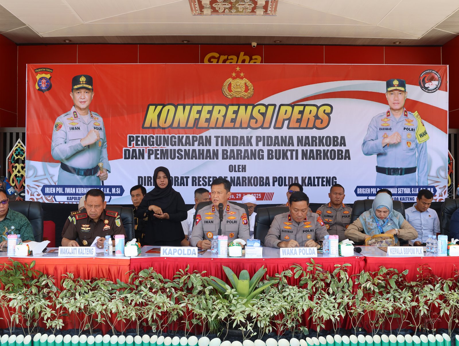Kegiatan ini, dipimpin langsung oleh Kapolda Kalteng Irjen Pol Iwan Kurniawan, didampingi Wakapolda Brigjen Pol Dr. Rakhmad Setyadi, dan dihadiri plt. Kepala BNNP, Wakajati, Kepala BPOM Provinsi dan stakeholder terkait lainnya serta sejumlah pejabat utama Polda.