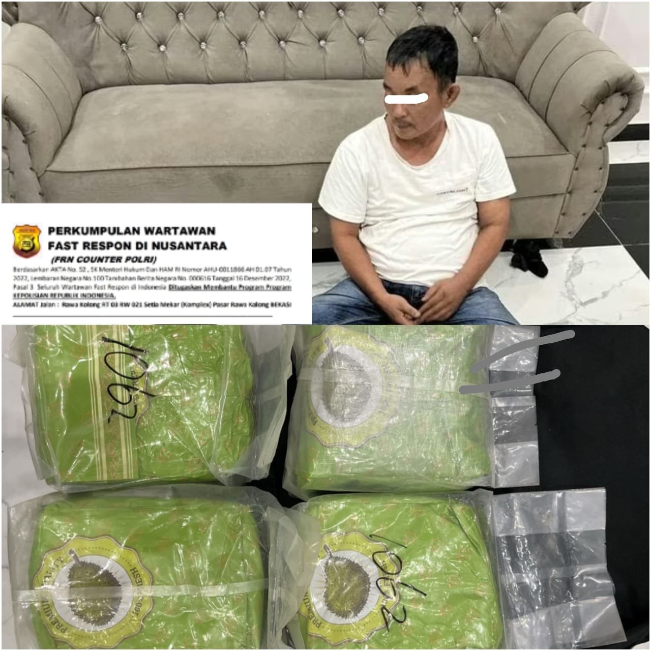 “Setelah itu tim membawa Sukron yang sudah diamankan, melakukan penggeledahan motor milik tersangka hasil penggeledahan di temukan barang bukti berupa empat bungkus warna hijau tulisan premium quality logo durian di dalam tas warna hitam pada bagasi motor PCX miliknya serta 1 unit ponsel merek Nokia,” jelasnya, Kamis (31/7/25).