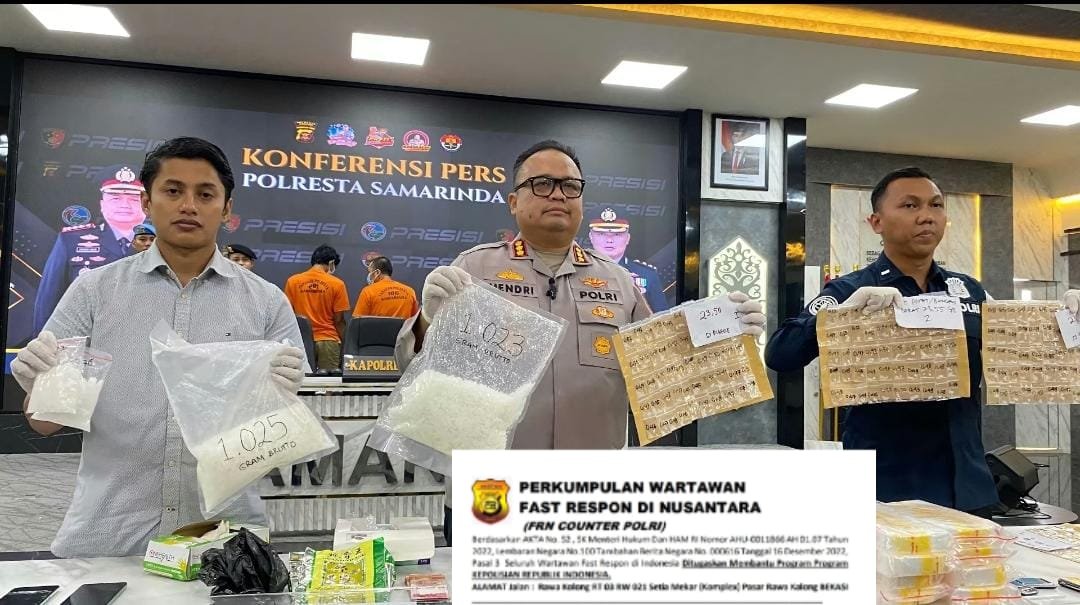 Konferensi pers dipimpin langsung oleh Kapolresta Samarinda Kombes Pol Hendri Umar, S.I.K., M.H., didampingi oleh Kasat Resnarkoba Kompol Bangkit Dananjaya, S.I.K., M.A., serta Kasi Humas Polresta Samarinda Ipda Novi Hari Setyawan, S.H., M.H. Kegiatan ini turut dihadiri oleh 24 awak media dari berbagai platform cetak dan daring.