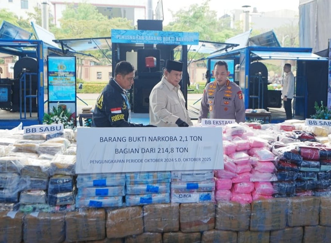 Pemusnahan barang bukti narkoba sebanyak 214,84 ton tersebut dihadiri langsung oleh Presiden Prabowo Subianto sekaligus memimpin pemusnahan barang haram tersebut di Lapangan Bhayangkara, Jakarta Selatan, Rabu (29/10/2025).