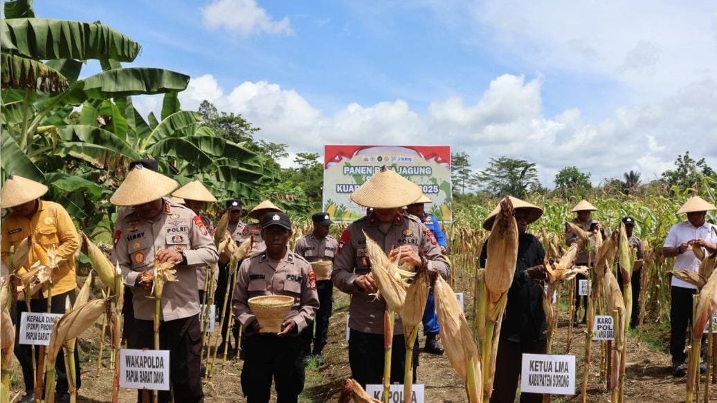 Sorong, – Polda Papua Barat Daya melaksanakan kegiatan Panen Raya Jagung Serentak Kuartal IV Tahun 2025 sebagai langkah nyata mendukung program ketahanan pangan nasional. Kegiatan tersebut berlangsung di Kota Sorong pada Kamis (08/01/2026) dengan melibatkan sinergi antara Polri, Lembaga Masyarakat Adat (LMA), serta Dinas Pertanian, Pangan, Kelautan, dan Perikanan (P2KP) Provinsi Papua Barat Daya.