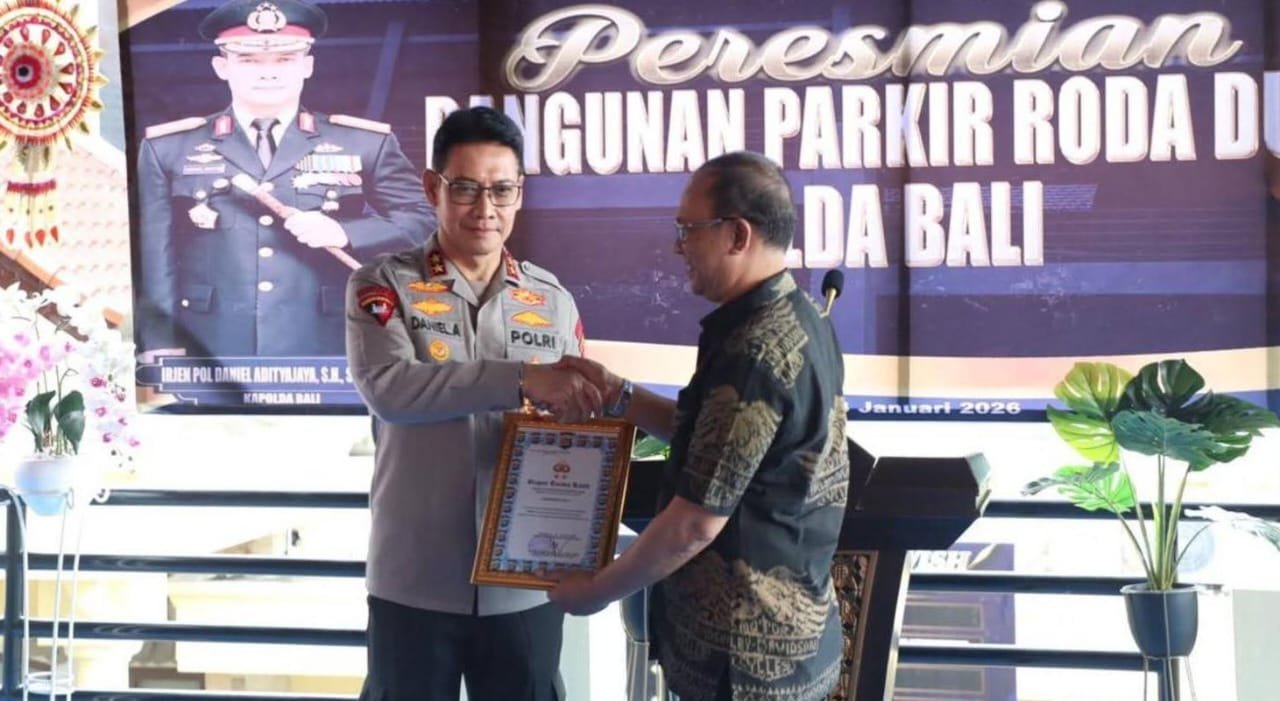 Denpasar – Kapolda Bali Irjen. Pol. Daniel Adityajaya, S.H., S.I.K., M.Si., meresmikan Bangunan Parkir Kendaraan Roda Dua Polda Bali yang berlokasi di lingkungan Mapolda Bali. Kegiatan peresmian tersebut dihadiri oleh Wakapolda Bali Brigjen. Pol. I Komang Sandi Arsana, S.I.K., M.H., seluruh Pejabat Utama (PJU) Polda Bali, dan Tamu undangan. Selasa, ( 13/1/2026).