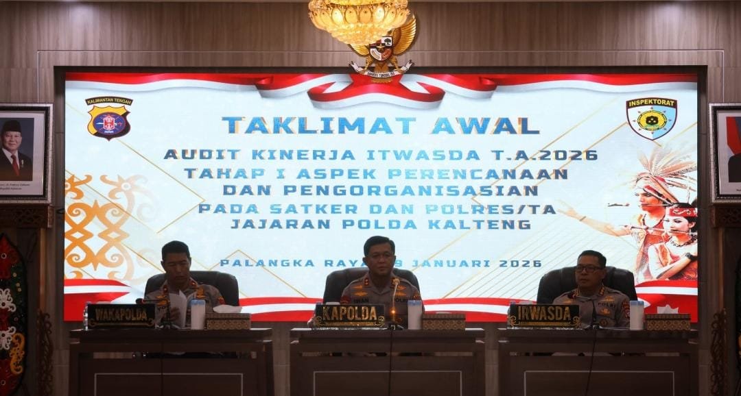 Palangka Raya – Kepolisian Daerah Kalimantan Tengah (Polda Kalteng) resmi memulai Audit Kinerja Itwasda Tahap I Tahun Anggaran 2026 yang berfokus pada aspek perencanaan dan pengorganisasian. Kegiatan ini dibuka langsung oleh Kapolda Kalteng, Irjen Pol Iwan Kurniawan, S.I.K., M.Si., di Aula Arya Dharma Mapolda setempat pada Senin (19/1/2026).