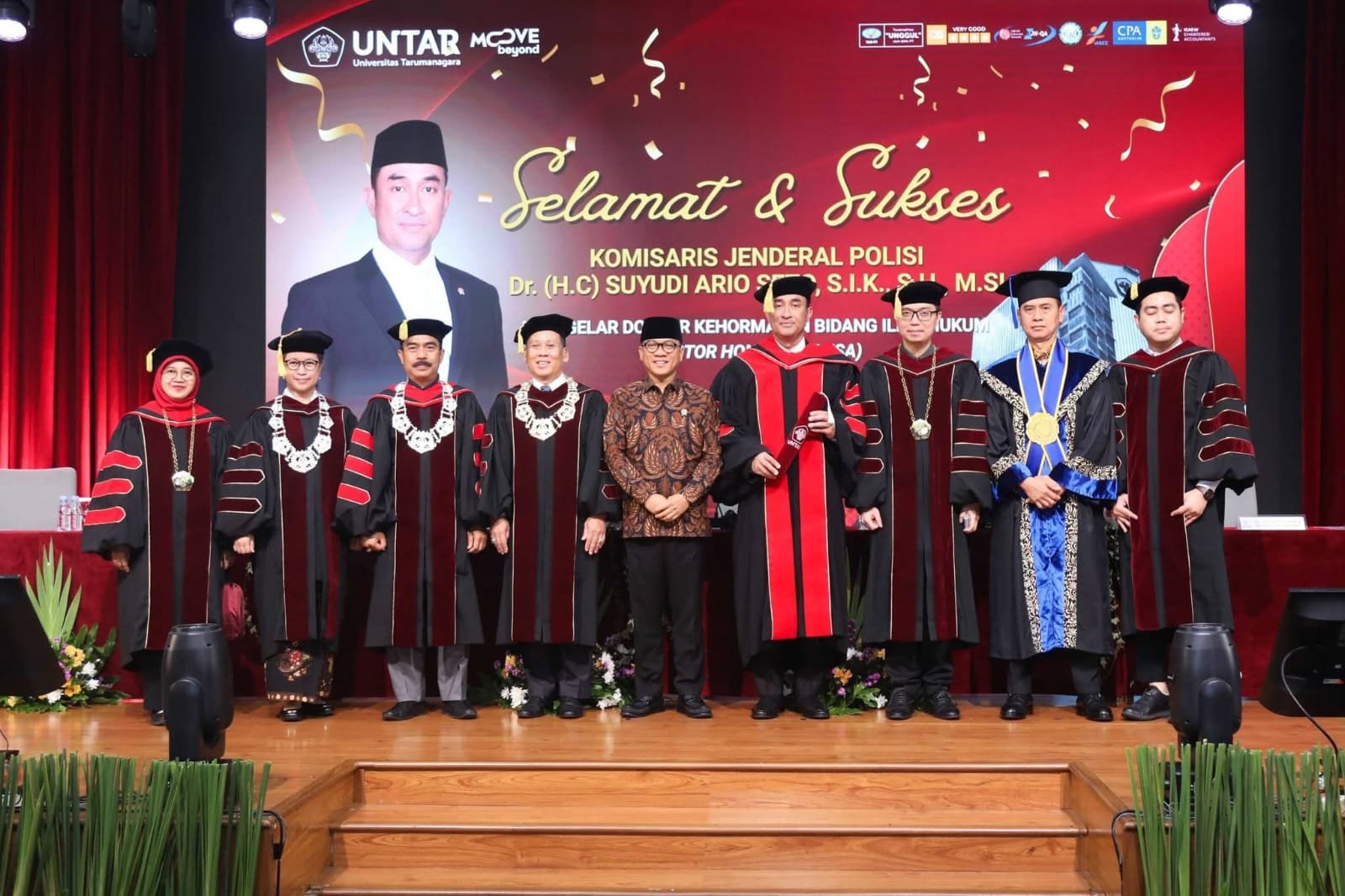 Rektor Universitas Tarumanagara, Prof. Dr. Amad Sudiro, S.H., M.H., M.Kn., M.M., dalam pembacaan pertanggungjawaban akademik menyampaikan bahwa kompetensi Promovendus, Kepala BNN RI Suyudi Ario Seto, telah melalui proses kajian, seleksi, dan penilaian akademik yang ketat sesuai dengan ketentuan peraturan perundang-undangan yang berlaku. Ia menegaskan bahwa penganugerahan gelar tersebut didasarkan pada jasa dan kontribusi Promovendus yang signifikan dalam pengembangan ilmu hukum pidana khusus, dampak nyata terhadap perlindungan masyarakat, serta integritas akademik, moral, dan etika yang selaras dengan nilai-nilai luhur perguruan tinggi.