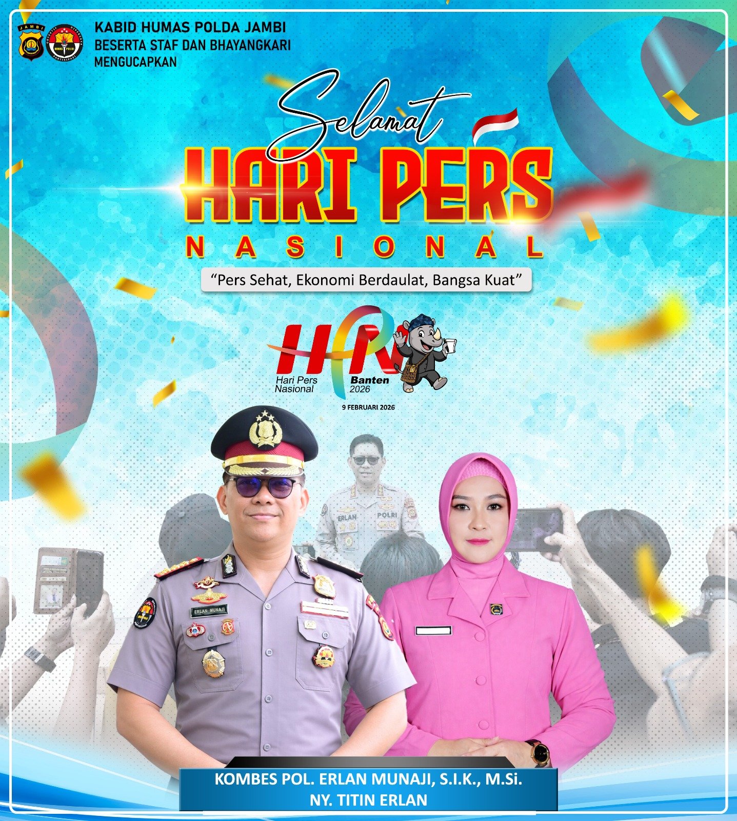 “Menjelang Hari Pers Nasional 2026, kami menyampaikan terima kasih dan penghargaan kepada seluruh insan pers yang selama ini telah bersinergi dengan Polda Jambi dalam memberikan informasi yang akurat, objektif, dan bertanggung jawab kepada masyarakat,” ujar Kabid Humas Polda Jambi, Minggu (8/2/2026).