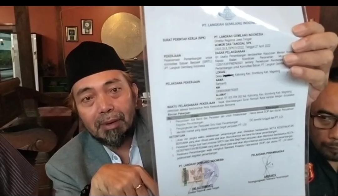 Magelang – Sengketa antara pemegang Surat Perintah Kerja (SPK) dengan PT Langkah Gemilang Indonesia (LGI) memasuki babak baru. Kuasa hukum pemilik SPK, Agus Flores, mengaku telah berkoordinasi dengan Dinas Energi dan Sumber Daya Mineral (ESDM) Kabupaten Magelang terkait polemik tersebut, Rabu (11/2/2026).