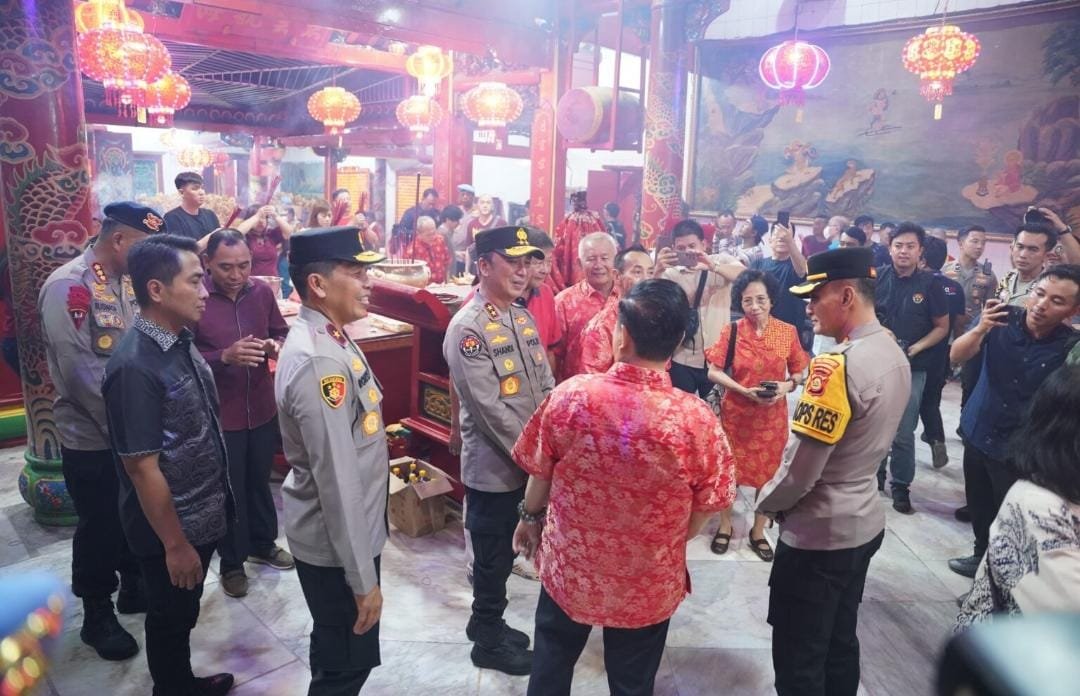 Peninjauan berlanjut ke Klenteng Tri Dharma di Jalan Perikanan, Kelurahan 9-10 Ulu. Di sana, Irjen Pol. Sandi Nugroho kembali memastikan seluruh rangkaian ibadah berlangsung lancar melalui interaksi langsung dengan petugas dan pengurus setempat.