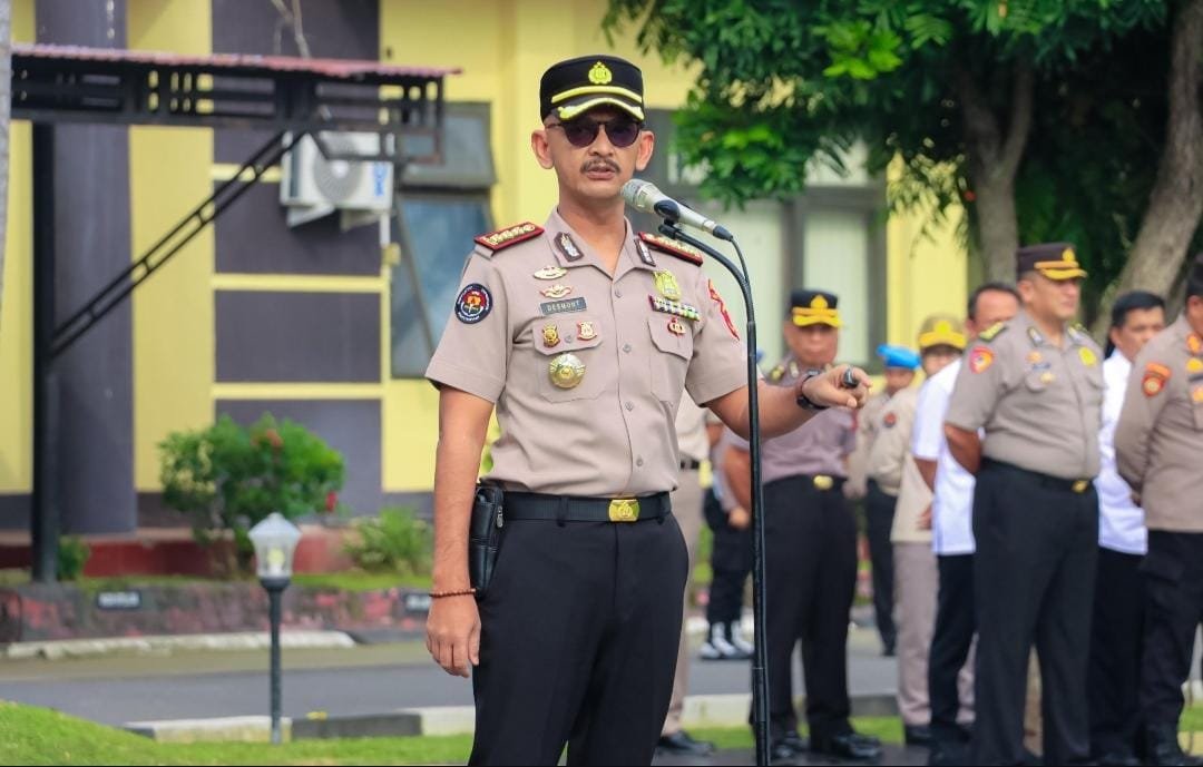 Gorontalo, – Kabid Humas Polda Gorontalo, Kombes Pol. Desmont Harjendro, A.P., S.I.K., M.T., memberikan penekanan khusus terkait kedisiplinan dan integritas kepada seluruh personel saat memimpin apel pagi di lapangan Mapolda Gorontalo, Rabu (04/03/2026).