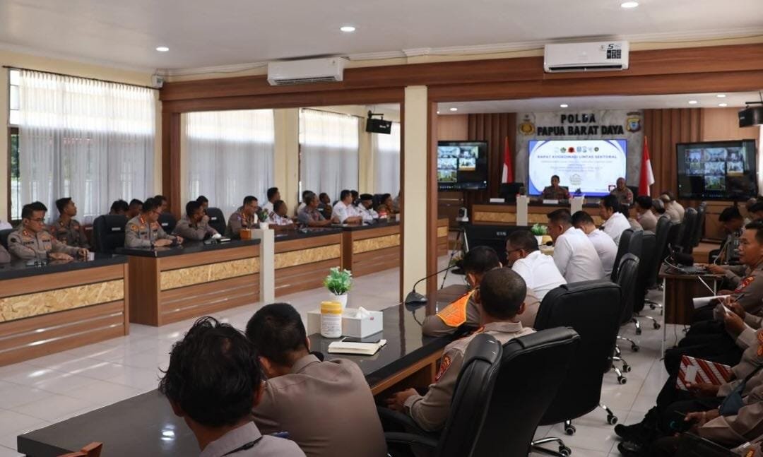 Sorong, – Kapolda Papua Barat Daya, Brigjen Pol. Gatot Haribowo, S.I.K., M.AP., memimpin Rapat Koordinasi (Rakor) Lintas Sektoral Operasi Kepolisian Terpusat “Ketupat Dofior-2026”. Pertemuan ini digelar untuk mematangkan strategi pengamanan dan pelayanan perayaan Idul Fitri 1447 H di wilayah Papua Barat Daya, bertempat di Aula Vicon Mapolda, Senin (9/3/2026).