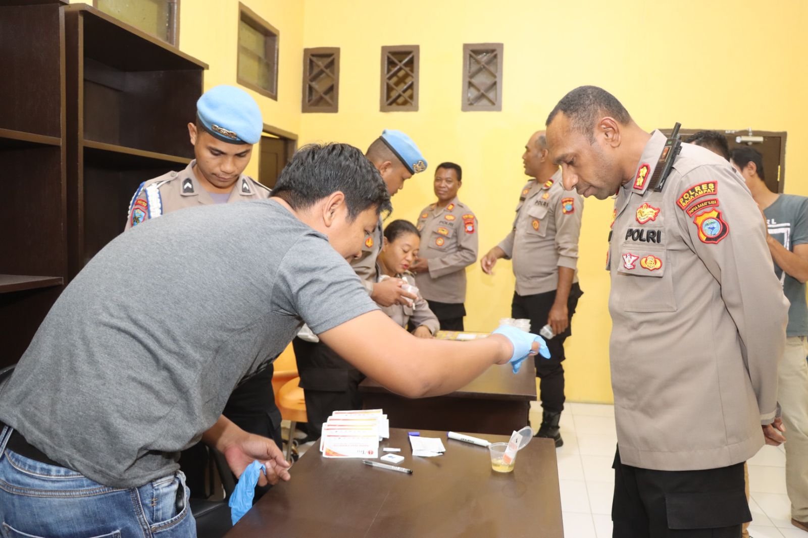 Raja Ampat, – Polres Raja Ampat menggelar pemeriksaan urine mendadak bagi jajaran Pejabat Utama (PJU) dan seluruh perwira di lingkungan Polres Raja Ampat. Langkah ini dilakukan untuk memastikan seluruh pimpinan di satuan tersebut bersih dari penyalahgunaan narkotika.