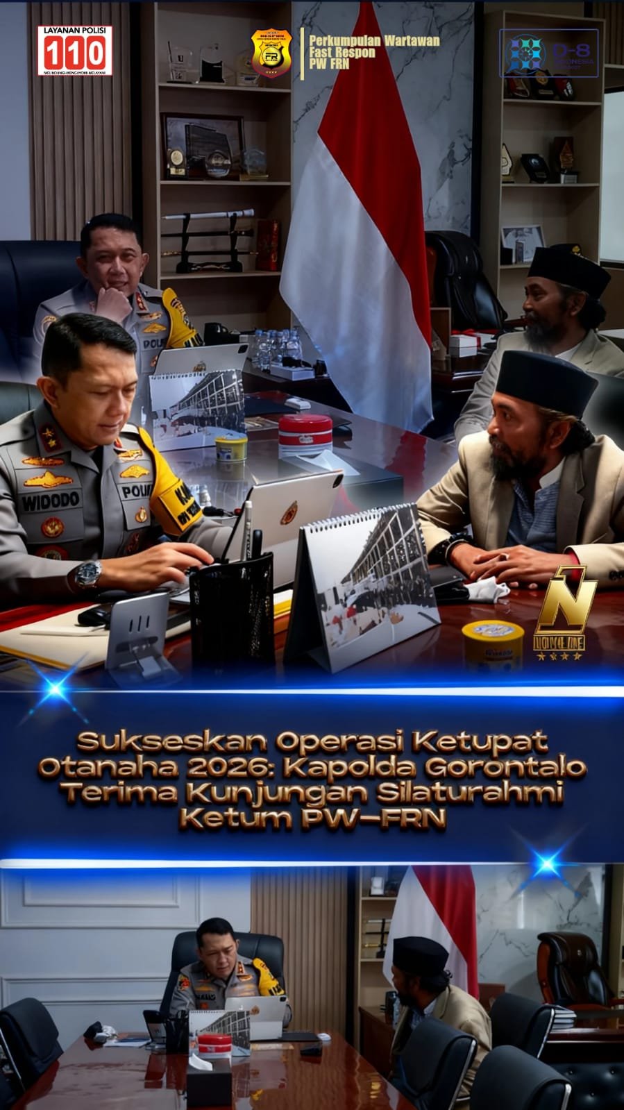 Gorontalo, – Kapolda Gorontalo, Irjen Pol. Drs. Widodo, S.H., M.H., menerima kunjungan silaturahmi Ketua Umum PW-FRN, Agus Flores, di Mapolda Gorontalo pada Selasa (17/03/2026). Pertemuan strategis ini difokuskan pada penguatan kolaborasi demi menjaga stabilitas Keamanan dan Ketertiban Masyarakat (Kamtibmas), khususnya dalam menyukseskan Operasi Ketupat Otanaha 2026 menjelang Hari Raya Idulfitri 1447 H.
