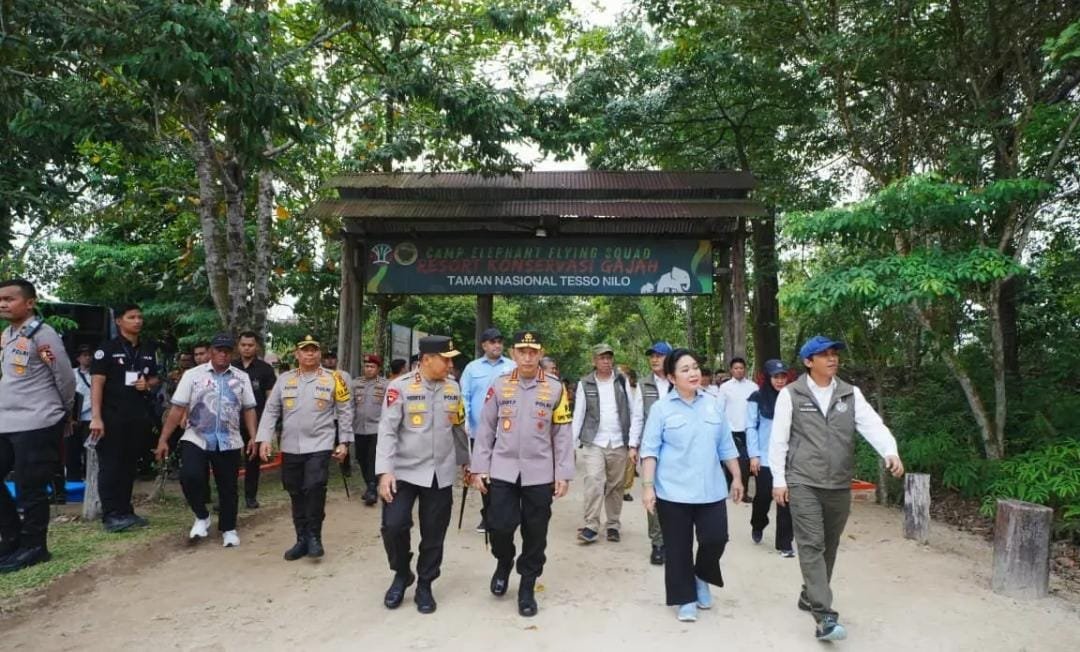 Riau, – Kapolri Jenderal Pol. Drs. Listyo Sigit Prabowo M.Si., bersama Ketua Komisi IV DPR RI, Siti Hediati Hariyadi (Titiek Soeharto), meninjau lahan konservasi di Taman Nasional Tesso Nilo (TNTN), Riau, pada Selasa (17/3). Kunjungan ini bertujuan memastikan pemulihan kawasan hutan sebagai habitat alami Gajah Sumatera berjalan aman dan lancar.
