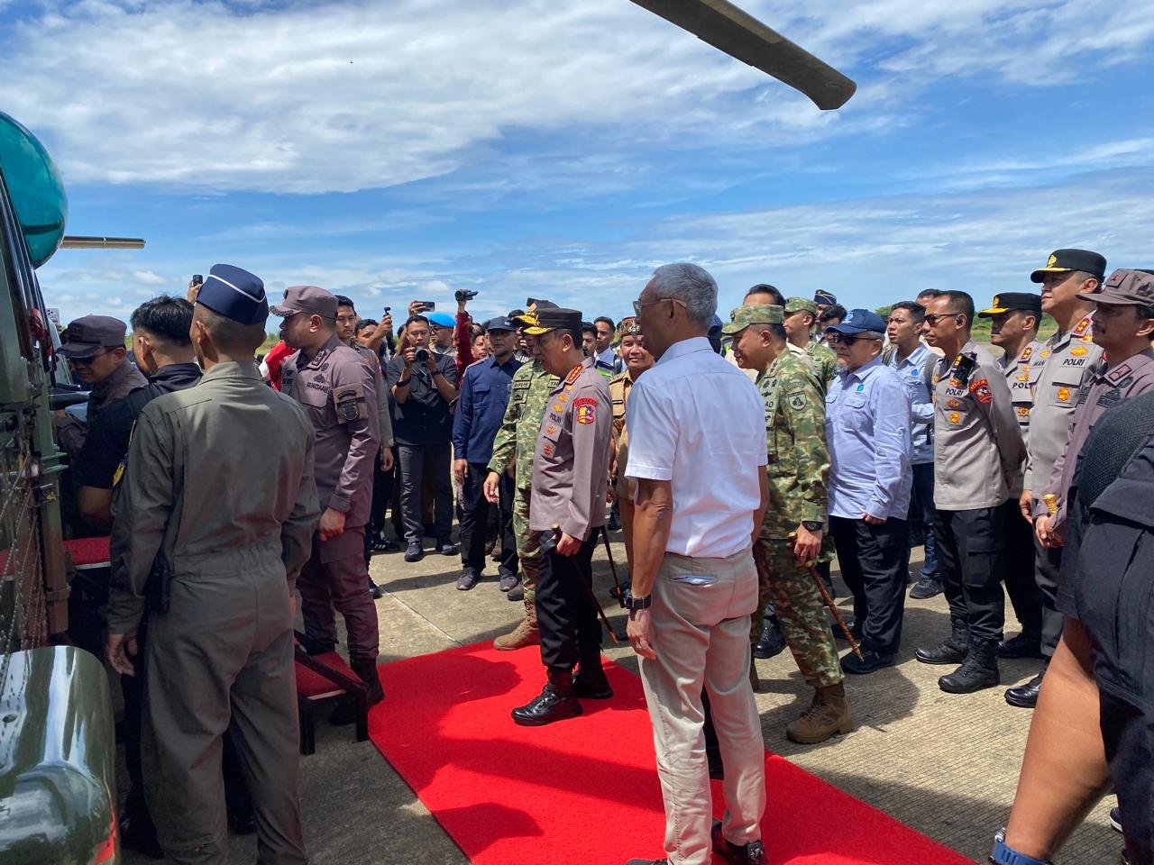 Palangka Raya – Kapolda Kalimantan Tengah (Kalteng) Irjen Pol Iwan Kurniawan, menyambut kedatangan Menteri Pertahanan RI, Sjafrie Sjamsoeddin, bersama rombongan Tim Satuan Tugas Penertiban Kawasan Hutan (Satgas PKH) di Bandara Tjilik Riwut, Palangka Raya, Selasa (7/4/2026).