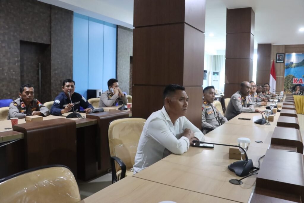 Raja Ampat, – Kapolres Raja Ampat, AKBP Jems Oktovianus Tegai, S.I.K., bersama jajaran Pejabat Utama (PJU) Polres Raja Ampat mengikuti rapat koordinasi melalui video conference (vicon) bersama Gubernur Papua Barat Daya pada Senin (20/4/2026). Rapat yang berlangsung di Aula Pemda Raja Ampat mulai pukul 10.00 WIT ini membahas detail persiapan kunjungan kerja Wakil Presiden Republik Indonesia.