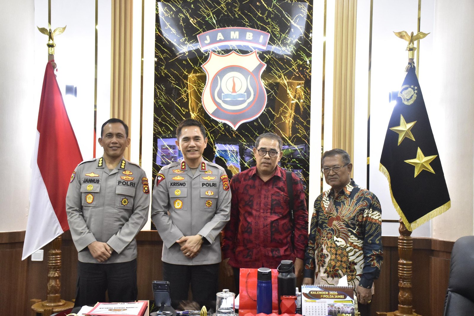 Jambi – Kapolda Jambi, Krisno H. Siregar, menerima audiensi dari Pendeta Waslen di ruang kerjanya pada Selasa (21/4/2026)