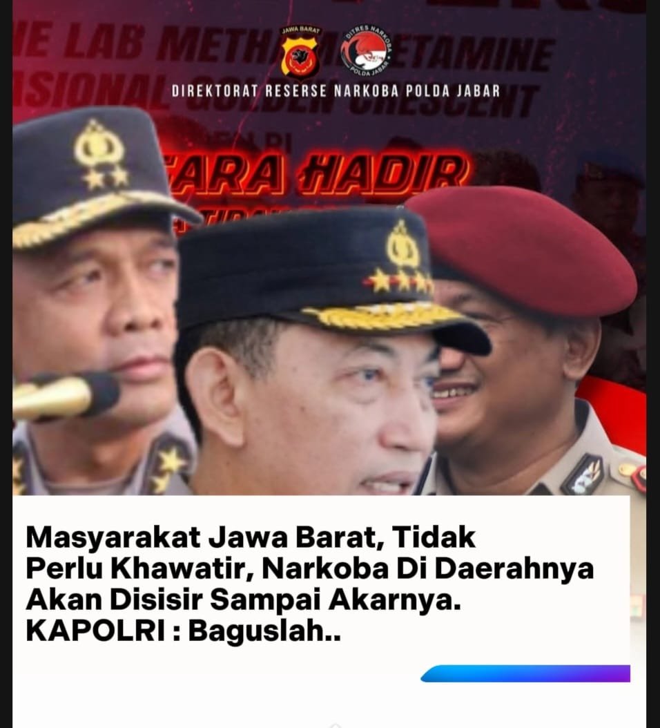 “Khususnya di Jawa Barat, Langkah bersih-bersih narkoba, sangat bagus. Kami akan terus memonitor perkembangannya,” ujar Kapolri menanggapi aksi masif pemberantasan narkoba di tanah pasundan.