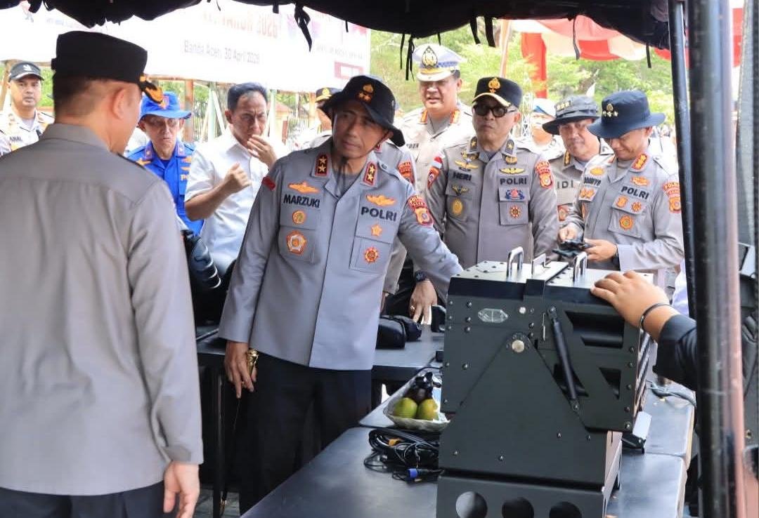Kegiatan yang berlangsung di Lapangan Mapolda Aceh, Kamis (30/4), melibatkan ratusan personel gabungan dari Polda Aceh dan Polresta Banda Aceh, serta disaksikan langsung oleh Kapolda Aceh Irjen Pol. Drs. Marzuki Ali Basyah, M.M, didampingi Wakapolda dan para Pejabat Utama Polda Aceh.